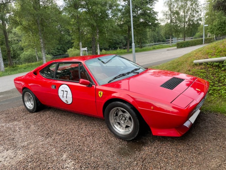 Denna Ferrari är en 308 GT4 S som är byggd för racing. Skillnaden är att den istället för fyrsitsig är tvåsitsig, den är 210 kg lättare, 35 hk starkare, ingen AC och lite annat smått och gott. Bilen är en av 11 tillverkade. Motorn är en liten V8 som debuterade i tävlingsversion 1962. Denna hade för V8:or sedvanliga vinkel 90 grader mellan cylinderbalkarna. Motorn har dubbla överliggande kamaxlar och helt byggd i aluminium med 4 dubbla Weberförgasare. Karossen ritades av Bertone.