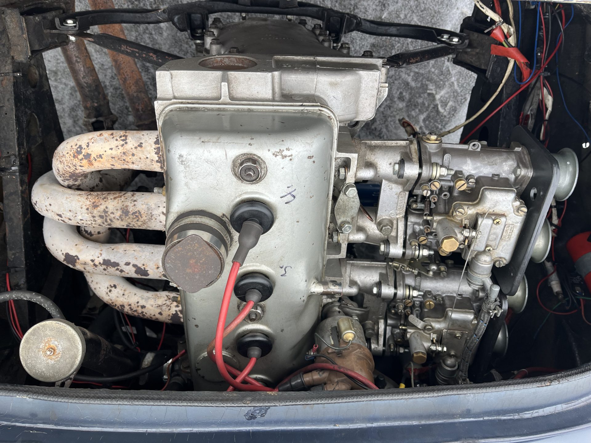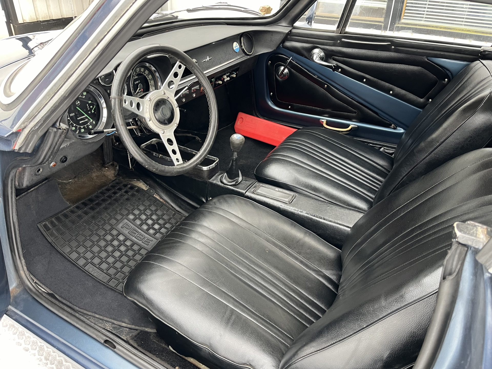Min Alpine har tidigare varit i samma familj i 34 år. Den har en 1600‑motor med dubbla Dell’Ortho‑förgasare, effekt ca 125 hk och 5‑växlad låda (Oves bil hade 174 hk!). Med en vikt på 630 kg är den snabb!