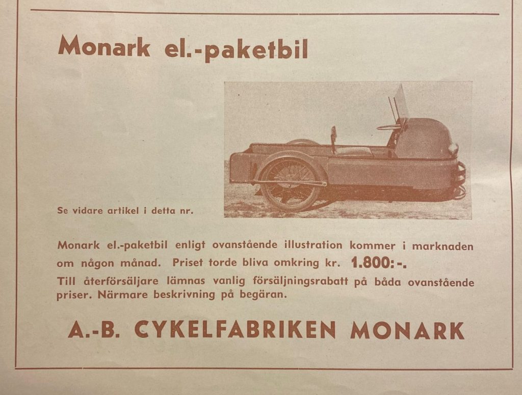 Mc:n är registrerad 1943 med en elmotor på 1.2 hk 48 volt samt tre blybatterier som ger en räckvidd på ca 3-5 mil. Troligen en ganska blygsam hastighet och fordonen var främst till för att köra ut varor lokalt i städerna. Elmotorn berodde på bensinransoneringen under kriget. Senare byggdes den om till bensindrift.