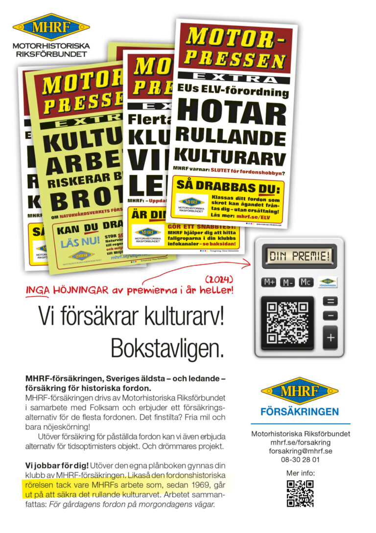Utöver den egna plånboken gynnas din klubb av MHRF-försäkringen. Likaså den fordonshistoriska rörelsen tack vare MHRFs arbete som, sedan 1969, går