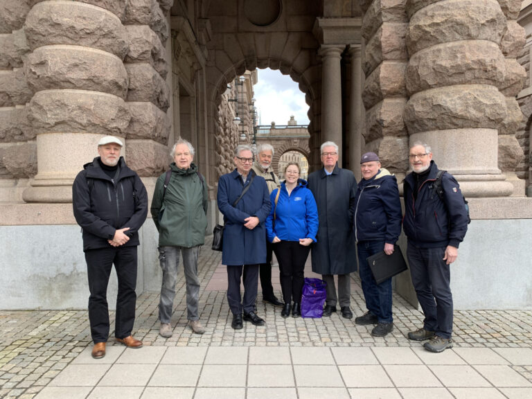 Från Transporthistoriskt Nätverk deltog denna gång (från vänster): DanThorell, Båthistoriska Riksförbundet, Anders Svensson, Järnvägshistoriska Riksförbundet, Per Englund, Museibanornas Riksorganisation, Kjell Franzén EAA Sverige, Malin Erlfeldt och Kurt Sjöberg, Motorhistoriska Riksförbundet, Christer Ericson, Sveriges segelfartygsförbund och Anders Svenson, Sveriges ångbåtsförening. Bakom kameran Helena Törnqvist, Arbetets museum och ordförande i ThNs styrgrupp.